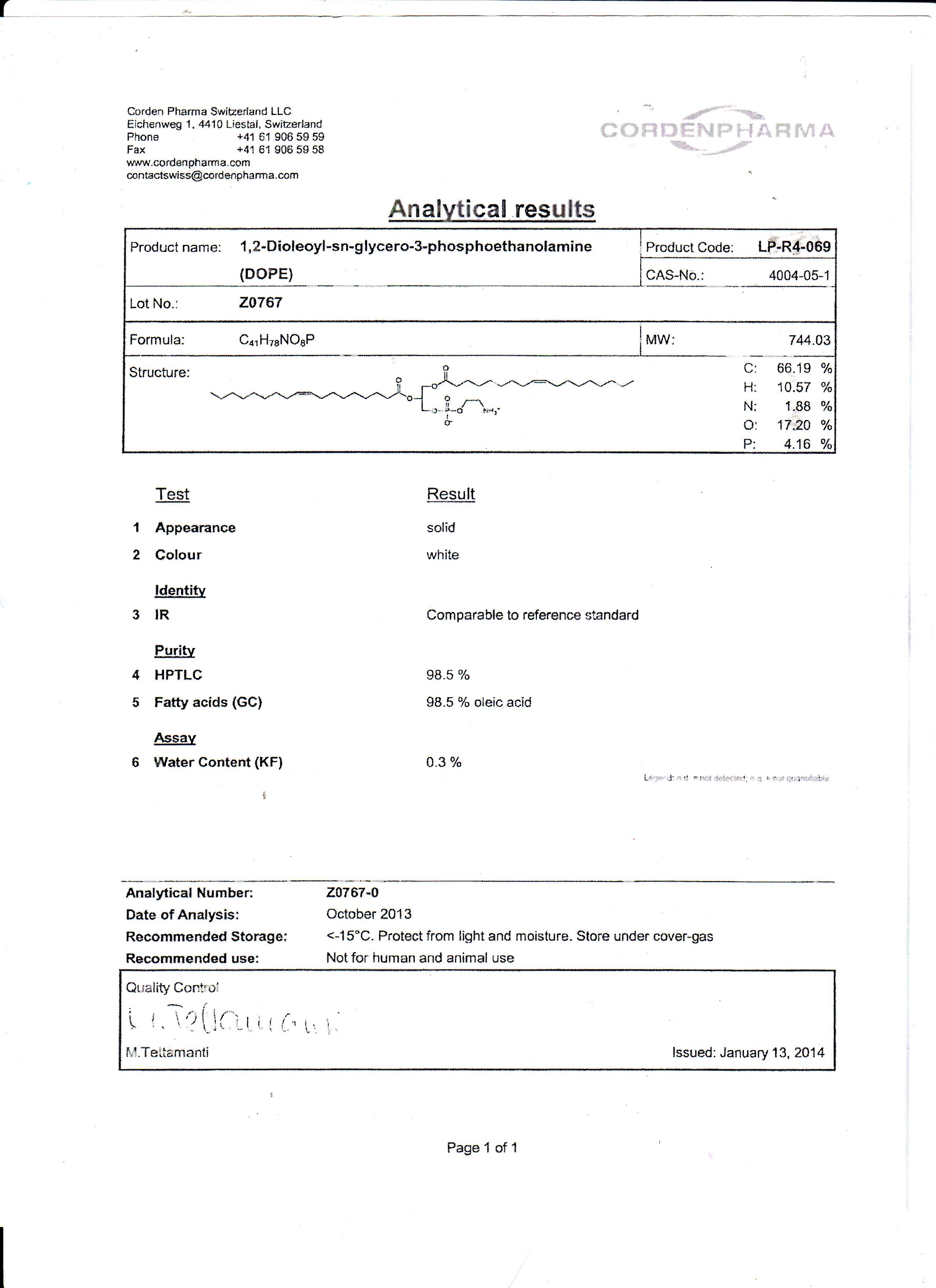 DOPE,二油酰基磷脂酰乙醇胺,4004-05-1,纯度99%,1,2-dioleoyl-sn-glycero-3-phosphoethanolamine