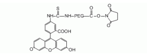 | R-2104-X | FITC-PEG-NH2 | Fluorescein labeled polyethylene glycol is a fluorescent PEG derivative which has a maximum absorption at 495 nm and emission around 515~520 nm. |