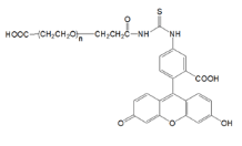 | R-2106-X | FITC-PEG-COOH | Fluorescein labeled polyethylene glycol is a fluorescent PEG derivative which has a maximum absorption at 495 nm and emission around 515~520 nm. |