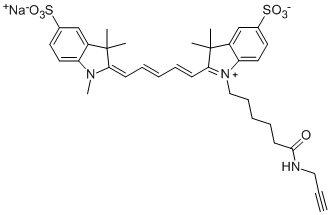 | R-H-3015 | Sulfo Cy5 alkyne | Water soluble reagent with alkyne group for Click Chemistry. Sulfo-Cyanine5 is a sulfonated dye, which possesses high hydrophilicity and aqueous solubility, exceptionally high extinction coefficient, good quantum yield, and compatibility with many instruments.This reagent is recommended for the conjugation with proteins, nanoparticles, and other applications where hydrophilicity is important. |
